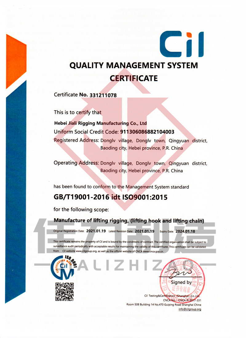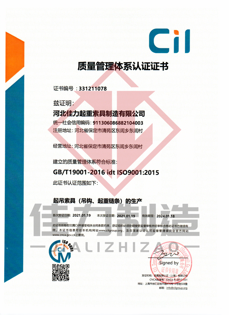 河北佳力起重索具制造有限公司是一家從事起重機械的研究開發(fā)、設(shè)計、制造、銷售及服務(wù)的企業(yè)。